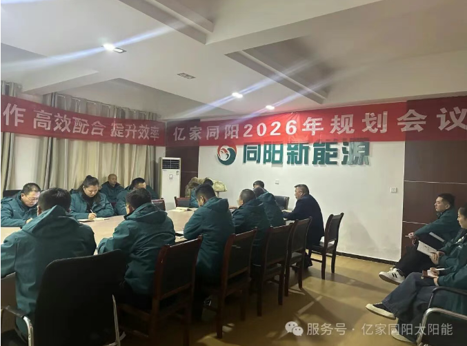 时光为卷,奋斗作笔。当2025年的乐章落下尾声,2026年的序曲已然奏响。2026年1月14日上午,亿家同阳召开2026年规划会议,公司董事长陈永峰、总经理姜仁良、财务总监张瑞娟、生产副厂长兼技术总工董宪军、营销中心总经理周军卫、北方营销中心胡乃武、鲁中营销中心司雨、煤改电营销中心王燕顺及各部门负责人等中高层领导参加会议。